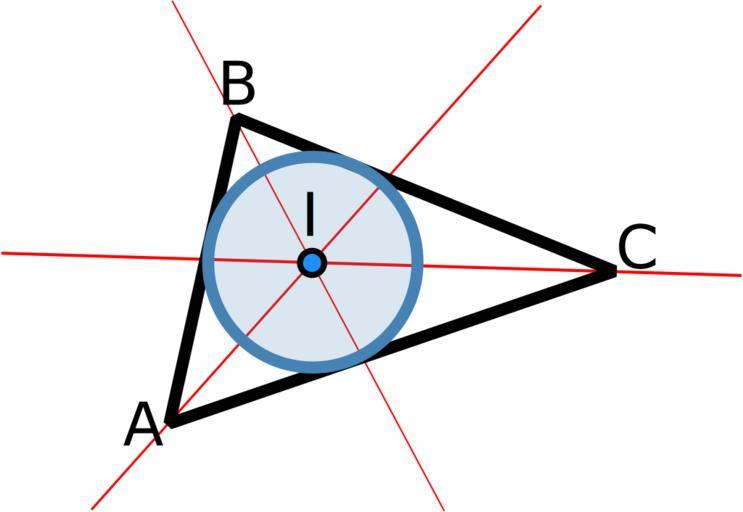 Keywords: Incircle.svg en Diagram to shown the construction of the incenter blue I the incircle blue pl Diagram ilustrujący konstrukcję okręgu wpisanego na trójkącie i jego środka own bazująca na / based on Image Incircle and Excircles svg Lampak Inductiveload 2008 Incircles of triangles Incircle and excircles Incenter |