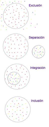 | Keywords: Inclusion diag es.jpg Diagrama que ilustra las diferencias entre exclusión separación integración e inclusión en el contexto delos sistemas educativos La imágen fue publicada en wikipedia en alemán http //de wikipedia org/wiki/Inklusive_Pädagogik bajo licencia de dominio público Los subtítulos fueron traducidos al castellano por mi Marjorie Marcel 2006-09-08 own assumed Marjorie Marcel Pedagogy | ||||