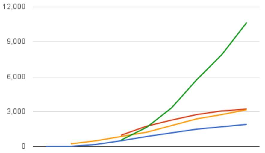 Keywords: Increase in high quality articles on English and German WP.png green English/Good Articles<ref>w en WP GAS</ref> red German/Good Articles<ref>w de WP Lesenswerte Artikel/nach Datum and w de WP Statistik der lesenswerten Artikel</ref> orange English/Featured Articles<ref>w en WP FAS</ref> blue German/Featured Articles<ref>w de WP Exzellente Artikel/nach Datum and w de WP Statistik der exzellenten Artikel</ref> own Pete Forsyth 2010-01-10 CC0 thumb left 250px only for Featured Articlesthumb 250px only for Good Articles wikitable Peer reviewed articles 2002 2003 2004 2005 2006 2007 2008 2009 2010 - German Featured Articles 0 10 166 492 850 1170 1449 1686 1911 - German Good Articles 953 1753 2268 2734 3039 3185 - English Featured Articles 194 473 849 1208 1789 2365 2730 3128 - English Good Articles 515 1623 3285 5701 7852 10648 - German total articles 9800 43000 182000 342000 544000 714000 874000 1000000 - English total articles 98000 185000 423000 845000 1500000 2100000 2700000 3100000 - All languages total articles 136000 397000 1300000 3000000 5900000 9200000 12000000 14700000 Sources <references /> Featured articles statistics Good articles statistics English Wikipedia statistics German Wikipedia statistics