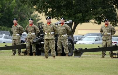 Keywords: outdoor Bravo Battery, 2nd Battalion, 2nd Field Artillery "Salute Battery" fires cannons during the 77th Army Band's rendition of Tchaikovsky's "1812 Overture" and to honor each state's entry into the Union during the Independence Day celebration, June 30, 2016 at post headquarters, McNair Hall, Fort Sill, Okla. Bravo Battery, 2nd Battalion, 2nd Field Artillery "Salute Battery" fires cannons during the 77th Army Band's rendition of Tchaikovsky's "1812 Overture" and to honor each state's entry into the Union during the Independence Day celebration, June 30, 2016 at post headquarters, McNair Hall, Fort Sill, Okla.