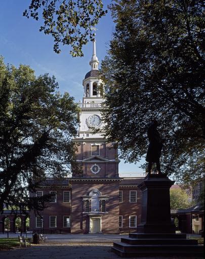 Keywords: independence hall steeple tower historic architecture philadelphia pennsylvania colonial usa declaration of independence constitution debates trees
