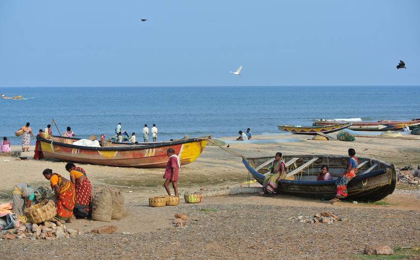 Keywords: india fisherfolk fishing fish labour boats beach work water ocean people sea seashore