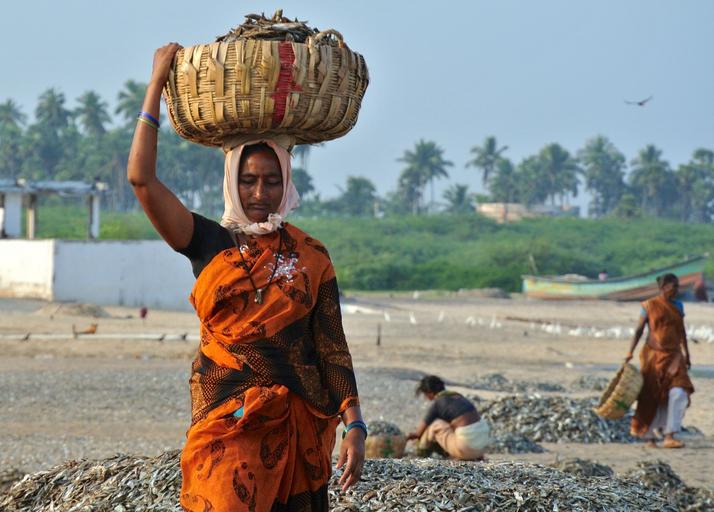 Keywords: india fishing basket fish labor asia fishwife nets beach net woman female