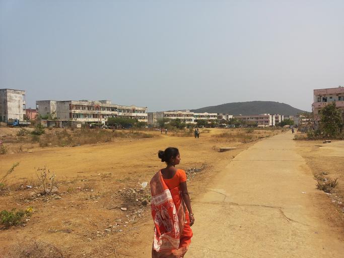 Keywords: india woman walking living rural female countryside dusty road bare land lady outdoor