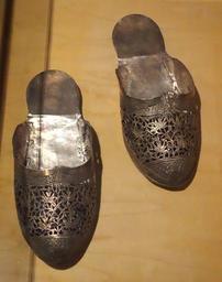 | Keywords: Indian bridal gift, silver filigree, North India, 19th century AD - Bata Shoe Museum - DSC00038.JPG en Exhibit in the Bata Shoe Museum Toronto Ontario Canada This item is old enough so that its design is in the public domain The museum permitted photography without restriction 2013-07-04 10 11 03 own Daderot cc-zero Shoes in the Bata Shoe Museum Uploaded with UploadWizard Footwear of India | ||||