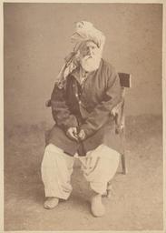 | Keywords: Indian Celebrities- Babu Khan WDL11440.png Artwork ru Индийские знаменитости Бабу-хан fr Personnages célèbres de l'Inde Babu Khan en Indian Celebrities Babu Khan zh 印度名人:巴布汗 pt Celebridades indianas Babu Khan ar مشاهير هُنود بابو خان ru Эта фотог афия Бабу-хана кото ый судя по т адиционному афганскому <em>longi</em> тю бану был вождем одного из пуштунских племен входит в альбом едких исто ических фотоснимков на кото ых изоб ажены люди и места связанные со Вто ой англо-афганской войной В пе иод б итанского господства 1858 1947 годов выдающихся б итанских должностных лиц и военнослужащих а также знатных индийских п авителей и вождей племен часто называли индийскими знаменитостями Вто ая англо-афганская война началась в нояб е 1878 года когда Великоб итания опасаясь как ей казалось астущего влияния России в Афганистане вто глась в эту ст ану с те ито ии Б итанской Индии Пе вый этап войны закончился в мае 1879 года подписанием Гандамакского догово а позволившего афганцам сох анить внут енний суве енитет однако заставившего их уступить конт оль над внешней политикой своей ст аны б итанцам Военные действия возобновились в сентяб е 1879 года после антиб итанского восстания в Кабуле и окончательно заве шились в сентяб е 1880 года ешающей битвой за Кандага Данный альбом включает по т еты б итанских и афганских лиде ов и военнослужащих фотог афии п остых афганских людей изоб ажения б итанских военных лаге ей военных действий ст оений пейзажей к упных и небольших го одов Все изоб аженные на фотоснимках места находятся на те ито ии сов еменных Афганистана или Пакистана в то в емя бывших частью Б итанской Индии Около т ети п едставленных в альбоме фотог афий выполнены Джоном Бе ком около 1843 1900 гг д угая т еть сэ ом Бенджамином Симпсоном 1831 1923 гг а оставшаяся часть несколькими д угими фотог афами Авто ы некото ых фотоснимков неизвестны Возможно что составителем альбома был один из членов б итанского п авительства в Индии однако это п едположение не подтве ждено Каким об азом альбом попал в Библиотеку Конг есса неизвестно <br>Афганские войны; Головные убо ы; По т етные фотог афии; По т еты; Пуштуны; Тю баны fr Ce cliché de Babu Khan probablement un chef tribal pachtoune comme le suggère son <em>longi</em> turban typique afghan est extrait d'un album de photographies historiques rares de personnalités et de sites associés à la seconde guerre anglo-afghane Pendant le Raj britannique de 1858 à 1947 les militaires et les administrateurs coloniaux de haut rang étaient souvent considérés comme des célébrités « indiennes » La seconde guerre anglo-afghane commença en novembre 1878 lorsque la Grande-Bretagne se sentant menacée par l'influence croissante des Russes en Afghanistan envahit le pays depuis l'Inde britannique La première phase de la guerre s'acheva en 1879 avec le traité de Gandamak qui permit aux Afghans de conserver leur souveraineté nationale mais les força à céder le contrôle de leur politique étrangère aux Britanniques Les combats reprirent en septembre 1879 à la suite d'un soulèvement antibritannique à Kaboul et ils se conclurent finalement en septembre 1880 avec la bataille décisive de Kandahar L'album contient des portraits de dirigeants et de militaires britanniques et afghans mais également d'Afghans ordinaires ainsi que des représentations de camps et d'activités militaires britanniques de structures de paysages et de villes et de villages Les sites photographiés sont tous situés sur le territoire de l'actuel Afghanistan ou Pakistan une partie de l'Inde britannique à l'époque Près d'un tiers des photographies furent prises par John Burke 1843 1900 env un second tiers par sir Benjamin Simpson 1831 1923 et le reste par plusieurs autres photographes Les auteurs de certains clichés ne sont pas identifiés Bien que cette théorie ne fût jamais confirmée l'album fut vraisemblablement compilé par un membre du gouvernement indo-britannique et les circonstances de son arrivée dans les collections de la Bibliothèque du Congrès restent inconnues <br>Guerres afghanes; Coiffures; Portraits photographiques; Portraits; Pathans/Pachtounes; Turbans en This photograph of Babu Khan probably a tribal Pashtun leader judging from his typical Afghan <em>longi </em> turban is from an album of rare historical photographs depicting people and places associated with the Second Anglo-Afghan War During the B