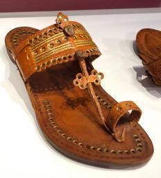 | Keywords: Indian chappal, Kolhapur, late 20th century - Bata Shoe Museum - DSC00450.JPG en Exhibit in the Bata Shoe Museum Toronto Ontario Canada The museum permitted photography without restriction 2013-07-04 11 10 30 own Daderot cc-zero Chappal in the Bata Shoe Museum Uploaded with UploadWizard |