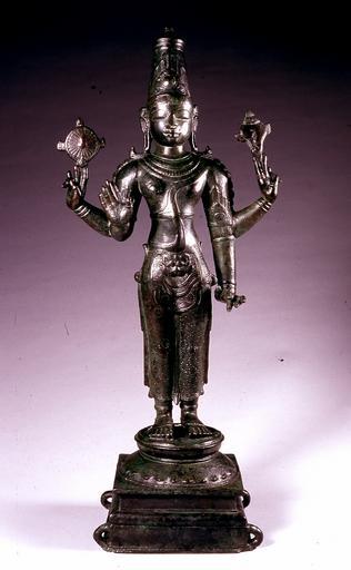 | Keywords: Indian - Festival Image of Vishnu - Walters 543020.jpg The flaming wheel is a symbol of the sun and of cosmic order The flaming conch shell is a symbol of the ocean and of primordial sound Originally Vishnu's lower left hand held a club symbolizing the knowledge that destroys time century 13 bronze cm 69 9 accession number 54 3020 10210 Kevorkian Collection no 237 Sale Parke Bernet New York New York December 8 1967 John Ford New York 1967 by purchase Walters Art Museum John Berthe Ford 2004 Desire and Devotion Art from India Nepal and Tibet in the John and Berthe Ford Collection The Walters Art Museum Baltimore; Birmingham Museum of Art Birmingham; Santa Barbara Museum of Art Santa Barbara; Albuquerque Museum Albuquerque 2001-2003 place of origin Tamil Nadu India Walters Art Museum license Sculptures from India in the Walters Art Museum Media contributed by the Walters Art Museum needs category review Vishnu in sculpture 13th-century art of India Hindu art in the Walters Art Museum |