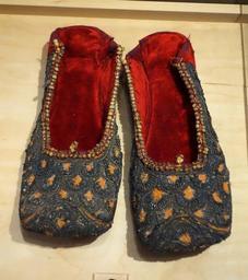 | View Original: | Indian mojari, 19th century, red velvet with gold embroidery and sequins - Bata Shoe Museum - DSC00132.JPG (3327x3756) | |||