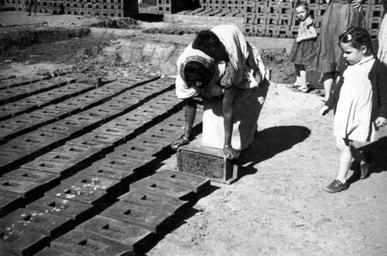 | Keywords: india mennonite board of missions mennoniteboardofmissions brick bricks laborer woman and child womanandchild women with child on back womenwithchildonback sylvia ann shirk sylviaannshirk blackandwhite monochrome outdoor black and white Caption: A woman laborer, carrying her baby on her back, empties a brick out of its mold. Sylvia Ann Shirk on the right. Citation: Mennonite Board of Missions Photographs, 1898-1967. IV-10-007.2 Box 4 Folder 13. Mennonite Church USA Archives - Goshen. Goshen, Indiana. Caption: A woman laborer, carrying her baby on her back, empties a brick out of its mold. Sylvia Ann Shirk on the right. Citation: Mennonite Board of Missions Photographs, 1898-1967. IV-10-007.2 Box 4 Folder 13. Mennonite Church USA Archives - Goshen. Goshen, Indiana. |