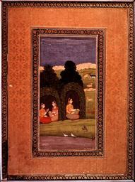 | Keywords: Indian - Single Leaf of Nayaka and Attendants in Leafy Bowers - Walters W876.jpg This painting Walters manuscript leaf W 876 dating to the 12th century AH/AD 18th depicts 3 women seated within 2 leafy bowers The Nayaka female lover or heroine sits alone while her 2 female companions known as sakhis converse in the other bower The painting may represent Utka nayaka a classification for heroines who are awaiting or yearning for their lovers Often they are shown on a bed of flowers or leaves that they have prepared in expectation of meeting their lovers In the landscape are animals engaged in various activities An outcrop of rocks in the distance forms a horizon above which is a blue sky streaked with light gray or white washes to suggest a thin layer of high clouds ca 1750 ink an dpigments on paper mounted on pasteboard cm 30 22 ; Image cm 18 4 9 5 accession number W 876 31766 John and Berthe Ford Baltimore date and mode of acquisition unknown Walters Art Museum John Berthe Ford 2001 place of origin Delhi India Walters Art Museum license 2D Media contributed by the Walters Art Museum needs category review Mughal miniatures in the Walters Art Museum Watercolor paintings of women of India 18th-century watercolor paintings from India |
