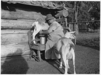 | Keywords: Indian woman milking a goat - NARA - 285903.jpg Scope and content The goat is juicing General notes 285903 Local identifier Department of the Interior Bureau of Indian Affairs Yankton Agency 1967 NARA's Central Plains Region Kansas City NREA 400 West Pershing Road Kansas City MO 64108 1940 Record group Record Group 75 Records of the Bureau of Indian Affairs 1793 - 1999 Record group ARC 404 Yankton Agency Photographs compiled 1920 - 1960 Series ARC 285902 File unit File unit ARC Variant control numbers NAIL Control Number NRE-75-Y PHO -7 Other versions <gallery> File Indian_woman_milking_a_goat_-_NARA_-_285903 tif tif File Indian_woman_milking_a_goat_-_NARA_-_285903 jpg jpg </gallery> NARA-cooperation PD-USGov Milking by hand Sioux Yankton County South Dakota 20th-century women of the United States 1940 Log cabins in the United States South Dakota in the 1940s 1940 in the United States Women at work in the United States 1940 Bureau of Indian Affairs United States Milking of goats Milkmaids |