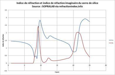 Keywords: Indice de refraction fused silica.png fr Indice de réfraction réel et imaginaire de la silice en fonction de la longueur d'onde 2012-03-28 own Euterpia cc-zero Uploaded with UploadWizard Glass Refractive index plots Refraction diagrams