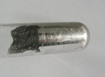 Keywords: Indium wetting glass.jpg en Indium wetting the glass surface of a test tube Own Schtone 2008-11-12 Indium