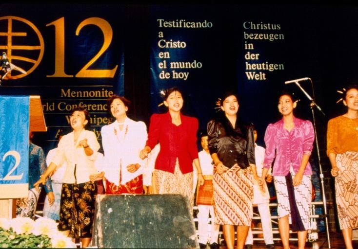 | Keywords: choir indonesian choir indonesianchoir mennonite world conference winnipeg manitoba canada mennoniteworldconferencewinnipegmanitobacanada people groupshot Caption: The rich and colorful attire of the Indonesian Choir was a drawing card. Citation: Mennonite World Conference. Twelfth Mennonite World Conference, 1990, Winnipeg, Canada. Slides by T. Klassen; Script by John Dyck. X-9 Box 52 Folder 4 Slide 68. Mennonite Church USA Archives - Goshen. Goshen, Indiana. Caption: The rich and colorful attire of the Indonesian Choir was a drawing card. Citation: Mennonite World Conference. Twelfth Mennonite World Conference, 1990, Winnipeg, Canada. Slides by T. Klassen; Script by John Dyck. X-9 Box 52 Folder 4 Slide 68. Mennonite Church USA Archives - Goshen. Goshen, Indiana. |