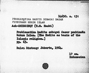Keywords: This card is part of a card catalogue of printed books held within the Indonesian collections of the British Library. These books were published before 1982. card catalogue indonesian