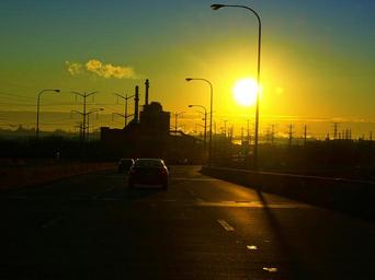 Keywords: industrial landscape chicago sunrise skyway bridge morning interstate road urban