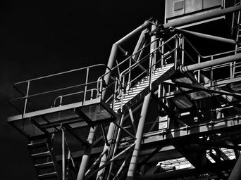 Keywords: industry building factory building architecture metal stairs stadtwerke düsseldorf black white