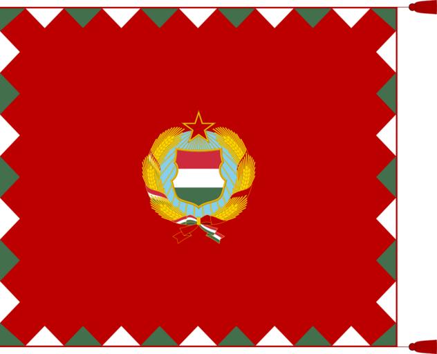 | Keywords: Infantry Colour of the Hungarian People's Army (1957-1990).svg flag Unit Colour of the Hungarian People's Army from 29 December 1976 to 14 September 1990 Previously used as the colour for rifle regiments independent battalions and standard for armoured regiments of the Hungarian People's Army from 11 October 1957 to 29 December 1976 1957 M mintájú csapatzászló a Magyar Néphadsereg gyalogos és páncélos fegyvernemeinek csapattestei részére 1957 október 11 és 1976 december 29 között 1976 M mintájú csapatzászló a Magyar Néphadsereg és 1990 március 15-tÅ‘l a Magyar Honvédség magasabbegységei harcoló és harcbiztosÃtó egységei valamint a katonai tanintézetek részére 1976 december 29 és 1990 szeptember 14 között 2013-12-04 02 20 24 own cite journal A honvédelmi miniszter 42/1957 H K 11 H M számú utasÃtása a csapatzászlók új cÃmerrel való ellátásáról Honvédségi Közlöny 11 October 1957 84 11 164 cite journal A honvédelmi miniszter 87/1976 HK 32 H M számú utasÃtása egységes csapatzászló rendszeresÃtésérÅ‘l Honvédségi Közlöny 29 December 1976 103 32 609 “610 Coat of arms of Hungary 1957-1990 svg Thommy <gallery> File Infantry Colour of the Hungarian People's Army 1957-1990 svg File Cavalry Standard of the Hungarian People's Army 1957-1976 svg </gallery> <gallery> File Infantry Colour of the Hungarian People's Army 1957-1976 with staff svg File Cavalry Standard of the Hungarian People's Army 1957-1976 with staff svg File Standard for armoured regiments of the Hungarian People's Army 1957-1976 with staff svg File Standard for motorised rifle regiments of the Hungarian People's Army 1957-1976 with staff svg File Infantry Colour of the Hungarian People's Army 1976-1990 with staff svg </gallery> A v + cc-zero PD-Hungary Insignia Uploaded with UploadWizard Flags with one red five-pointed star Flags with wheat Flags with wreaths Green red white flags Infantry Colours of Hungary SVG flags - military of Hungary SVG flags - historical of Hungary |