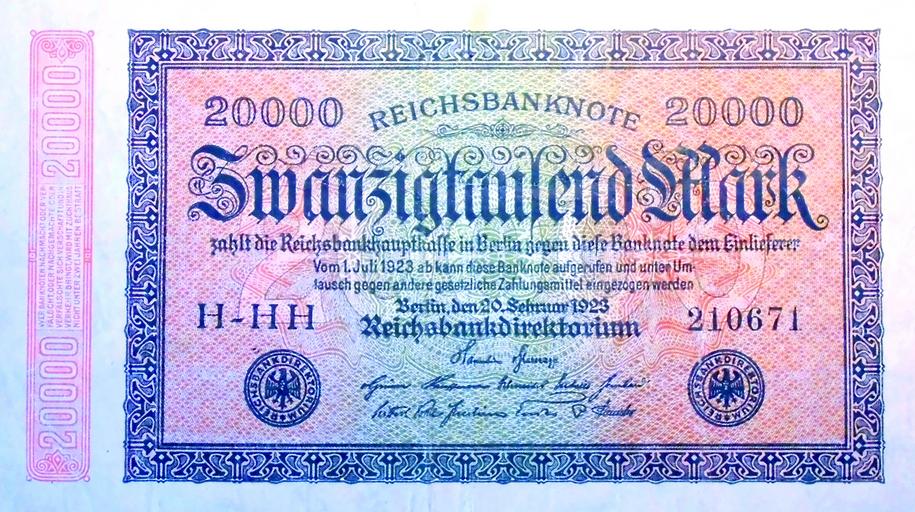 Keywords: inflation money 1923 imperial banknote weimar republic germany war-induced poverty hunger economy reparation finance crisis currency misery loss reparations