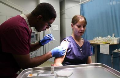 | Keywords: Influenza vaccinations in Afghanistan 141020-N-JY715-744.jpg en HM2 Naji Thomas administers a flu vaccine to a patient at the NATO Role 3 Multinational Medical Unit in Kandahar Afghanistan 2014-10-20 Lt Cmdr Jesse Ehrenfeld https //www dvidshub net/image/1712126 141020-N-JY715-744 2014-12-31 14 52 KANDAHAR AIRFIELD AF PD-USGov-Military-Navy Kandahar International Airport Images from DoD uploaded by Fæ | ||||