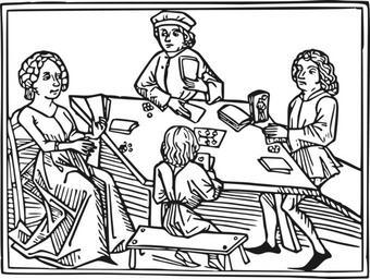 | Keywords: Ingolds Guldin Spiel 1472.svg de Zwei Männer eine Frau und ein Junge beim Kartenspiel en Two men one woman and one adolecent playing cards 1472 woodcut place of discovery object history exhibition history credit line accession number place of creation Ingolds Guldin Spiel Augsburg Günther Zainer 1472 Project Gutenberg PD-old-100-1923 Uploaded with UploadWizard Card games in art Playing cards in art | ||||