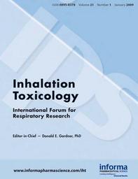 | Keywords: Inhalation Toxicology.jpg en Inhalation Toxicology cover Published by Informa Pharmaceutical Science Volume 21 14 issues a year Print ISSN 0895-8378 Online ISSN 1091-7691 www informapharmascience com/iht Own James w Davis PermissionOTRS https //ticket wikimedia org/otrs/index pl Action AgentTicketZoom TicketID 2750131 Periodicals about science and technology Toxicology Respiratory system | ||||