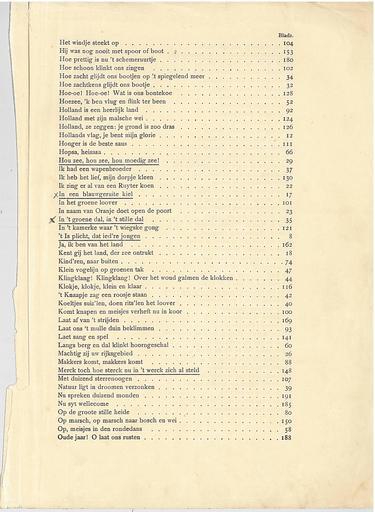 Keywords: Inhoud pagina 2.jpg Kun je nog zingen zing dan mee Muziek en teksten origineel gepubliceerd voor 1900 own 1915 author PD-old Kun je nog zingen zing dan mee