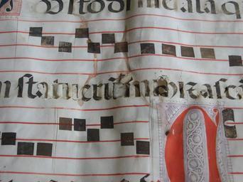 | Keywords: InkErosion.jpg Ink corrosion iron gall ink has oxidized the cellulose causing the paper to disintegrate <br /> The manuscript is exhibited behind glass in a church in Evora Portugal next to the Capela dos Ossos I took the photo through the glass The manuscript is exhibited there without any comment as just a curious old object The light is indirect daylight Manuscript from Igreja de Sao Francisco Evora Portugal 2007-05 Photo by Ceinturion PD-old QualityImage Iron gall ink Ink corrosion Manuscripts in Portugal Sheet music examples |