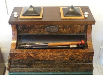 | Keywords: Inkstand with plaque inscribed FHH and dated 1822, owned by chimney-sweep in Coburg, Sachsen-Coburg, Germany, alder root veneer - Nordiska museet - Stockholm, Sweden - DSC00005.JPG en Exhibit in the Nordiska museet - Stockholm Sweden This work is in the public domain because the artist s died more than 70 years ago 2014-09-13 10 33 21 own Daderot other versions cc-zero Writing tools in Nordiska museet Uploaded with UploadWizard Inkstands | ||||