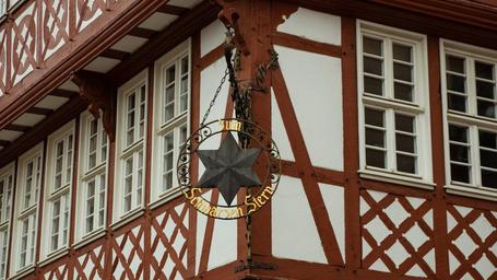 Keywords: inn sign old star black half-timbered vintage symbol inn sign