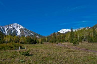 | Keywords: arizona coconino national forest coconinonationalforest flagstaff flagstaff ranger district flagstaffrangerdistrict forest service forestservice inner basin trail innerbasintrail inner basin trail no. 29 innerbasintrailno29 san francisco mountain sanfranciscomountain san francisco peaks sanfranciscopeaks usfs caldera forest hike hiking mountain outdoors panshot peaks snow trail volcano united states unitedstates outdoor landscape grassland field hill mountainside foothill The Inner Basin Trail ascends from Lockett Meadow into the caldera of the San Francisco Peaks, an extinct volcano and home of the tallest peaks in Arizona. The first 1.7 miles of the trail winds through the extensive aspen forest flanking the upper reaches of the Peaks, joining the Waterline Trail briefly before following a jeep road into the caldera. The trail starts at an elevation of 8665 feet, gaining approximately 1200 feet over 2 miles on its way into the Inner Basin. The trail continues another 2 miles, gaining an additional 600 feet or so to join up with the Weatherford Trail. Photo by Deborah Lee Soltesz, May 2009. Credit: U.S. Forest Service, Coconino National Forest. For more information about this trail, see the Inner Basin No. 29 trail description on the Coconino National Forest website. The Inner Basin Trail ascends from Lockett Meadow into the caldera of the San Francisco Peaks, an extinct volcano and home of the tallest peaks in Arizona. The first 1.7 miles of the trail winds through the extensive aspen forest flanking the upper reaches of the Peaks, joining the Waterline Trail briefly before following a jeep road into the caldera. The trail starts at an elevation of 8665 feet, gaining approximately 1200 feet over 2 miles on its way into the Inner Basin. The trail continues another 2 miles, gaining an additional 600 feet or so to join up with the Weatherford Trail. Photo by Deborah Lee Soltesz, May 2009. Credit: U.S. Forest Service, Coconino National Forest. For more information about this trail, see the Inner Basin No. 29 trail description on the Coconino National Forest website. |