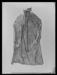 | Keywords: Innerskjortan Lützen - Livrustkammaren - 25881.tif LSH artwork sv Skjortan är sydd av 3 stora stycken l ca 1425 mm som kan iakttagas frÃ¥n krage till nederfÃ¥ll VÃ¥dbredden är 920 mm som kan konstateras frÃ¥n V nedre sprundet där staden gÃ¥r till fällsömmen i H sida Den smala ökningsvÃ¥den pÃ¥ H sida är 220 + 220 mm bred 440 mm H framstyckspartiet har spÃ¥r av skarvsömmen stadkanten är 500 mm lÃ¥ng utefter H sidsöm pÃ¥ framstycket som är en kastfÃ¥ll - sydd frÃ¥n avigsidan kastad stad mot stad 10 V-vända kaststygn / cm Intill denna söm har en rektangulär lucka rivits ut 190 x 40 mm Ärmens spjäll och andra fÃ¥llar är fällsömmar med 9 stygn / cm Spetsarna är kastade med ca 6 stygn / cm <br/>Av kragen finns en 230 mm lÃ¥ng flisa utefter kantfÃ¥llen nedtill Spetsen är delvis lossliten - sitter fast blott 50 mm och är myckt blodig L ca 130 mm Kragen är 60 mm hög och dubbelvikt <br/>Skjortan är inveckad med täta rynkor i kragen 20 rynkor / cm och sydd med 10 kaststygn och 7 efterstygni garneringssömmen / cm närmast rynkorna och 6 stygn ytterst Spetsen är 50 resp 20 mm hög <br/>Manschetten är 48 mm bred Sprundet är bevarat 70 mm lÃ¥ngt C a 14 rynkor / cm och 8 resp 6 garneringsstygn / cm Spetsen är fastkastad med ca 8 stygn Ã¥t V med vitt lingarn <br/>KastfÃ¥llen i skjortans nederkant är 15 mm bred och nedkastad med ca 9 stygn / cm H-vända med samma trÃ¥dsom skjortans - Varpen otvinnad inslaget ev svagt V-tvinnat <br/>Ett litet stycke av skjortan utgöres av en smal mycket blodig remsa frÃ¥n ena ärmen med kvarsittandespetsgarnering och en liten rest av manschetten Härav kan man fastställa ärmlängden till ca 590 mm dÃ¥sömmen mot skjortans bÃ¥lparti bevarats knappt 80 mm PÃ¥ detta stycke finns ca 140 mm kvar av aelsömmen som är en fällsöm som smalnar mot axeln <br/>Skjortans minsta smala remsa är ett stycke av V ärm som passar i den hackiga konturen pÃ¥ ärmens minstblodia parti med den mellersta myckt blodiga spetsen Detta stycke har sÃ¥väl ett stycke av skjortansaxelsöm 140 mm som lagts omlott i en sneddad söm mellan 7-14 mm bred Garneringssömmen sydd med 7stygn / cm I fortsättningen av den blott knappt 30 mm breda remsan med spetsen centralt nedtill sitteren 5 mm bred flisa av manschetten kvar med del av spets ocksÃ¥ Blott ca 480 mm av spetsens längd finns dock kvar här de översta 110 mm är bortrivna Av V ärms V axelparti finns av framstycket ett revat parti som överst har den vikta fÃ¥llen som är 145mm lÃ¥ng Efter 30 mm nerÃ¥t är en med sömmen parallell reva ca 90 mm lÃ¥ng sÃ¥ att blott en 15 mm bredtunga hÃ¥ller samman det snedrivna stycket som tillkommer med en längd av 170 mm och höjd av 130 mm Bakstycket som har en längd av 135 mm vid fÃ¥llen mot framstycket är ungefär jämnbrett med ca 110 mmbredd och nederst 240 mm lÃ¥ngt <br/>Gemensamt <br/>Av linnelärft med trÃ¥dantal 43 varptrÃ¥dar x 44 inslagstrÃ¥dar / cm2 sammanfogad av framstycke bakstycke b 1470 mm sidstycke samt ärmar ärmspjäll krage och ärmlinningar I sidorna har nertill ämnats ca 510mm höga sprund staden är synlig här i v sida Skjortans bÃ¥lparti är rakt tillskuret Nedtill harskjortan fÃ¥llats upp med en 15-20 mm bred fÃ¥ll sydd med 5 à 6 stygn/cm av H-tvinnat lingarn Derektangulärt tillskurna ärmarna blott den v nÃ¥gorlunda bevarad är 610 mm lÃ¥nga och 460 mm breda ochgarnerade med 3 rader knappt 20 mm breda vita knypplade mellanspetsar pÃ¥sydda med ca 100 mm mellanrum Ärmarna är fastsydda i skjortans sidsöm pÃ¥ v sida där staderna stöta mot varandra I h sida har manklippt upp ett 390 mm lÃ¥ngt sprund för ½ ärmbredden 230 mm + spjäll 160 mm 390 mm Nedanförärmstycket har alltsÃ¥ ett spjäll med ca 160 mm sida sytts fast Ärmarna är alltsÃ¥ isydda helt normalt och inte som Anna Maja Nylén förmodat enligt en mer egendomlig konstruktion sÃ¥ att ärmen skulle nÃ¥ ändafram till halslinningen <br/>Axelsömmarna är i det allra närmaste helt raka de yttersta 165 mm Man har blott vikt ner fÃ¥llarna nÃ¥gotbredare mot axeln än mot halsen ca 5 mm differens Härefter har ll Ã¥terstÃ¥ende vidd rynkats in i dendubbelvikta knappt 70 mm hÃ¥ga kragen som är ca 400 mm lÃ¥ng sÃ¥ att frampartierna av skjortorna fördelatspÃ¥ kragens främre decimeterlÃ¥nga stycken medan ryggstycket rynkats i kragens bakre 200 mm <br/>Halssprundet är klippt upp vertikalt i framstycket l minst 270 mm synligt i h sida därspetsgarneringen bevarats en 15 mm bred uddspets Dessutom kan pÃ¥pekas att sprundet ej placerats heltsymmetriskt mitt pÃ¥ skjortans framstycke utan med ett par centimeters förskjutning Ã¥t h dÃ¥ det klipptsca 600 mm frÃ¥n v sidsöm och 230 + 350 580 mm frÃ¥n h sida Dekor av en 15 mm bred uddspets rapport 20mm Överst pÃ¥ kragen är denna typ av spets fastsydd för att stÃ¥ upp som en avslutande kant PÃ¥ kragensutsida är kant i kant med den smala spetsen och nedÃ¥t en bredare uddspets fastsydd Denna är 50 mm bredoch har en rapport av 22 mm motivet pÃ¥minner om solfjädrar <br/>Kragens garneringssömmar sydda med efterstygn i 2 parallella rader med 7 stygn/cm och 16 rynkor avskjortan / cm Spetsen är fastkastad med 7 stygn / cm med H-tvinnat lingarn <br/>H axelsöm är en fällsöm lik den pÃ¥ skjorta C 14-3 mm bred och 165 mm lÃ¥ng Den är sydd med 3 sömmar med eftersygn Av v sidostycke ryggstycket framgÃ¥r att skjortans sidosprund sannolikt varit ca 510 mm lÃ¥ngt Isjälva sömmen är plagget emellertid uppfläkt Den V ärmen som är rel bra bevarad är nedtill vid linningen som klippts upp oerhört blodig Denhar ett ca 70 mm lÃ¥ng ärmsprund - sönderrivet och manschetten är ca 45 mm hög hur lÃ¥ng kan ej avgöras En 17 mm bred mellanspets med hjulmotiv rapport 25 mm har som garnering sytts pÃ¥ ärmarna i 3rader ända uppifrÃ¥n axelsömmen och ned till ärmlinningen Ã…tgÃ¥ng ti