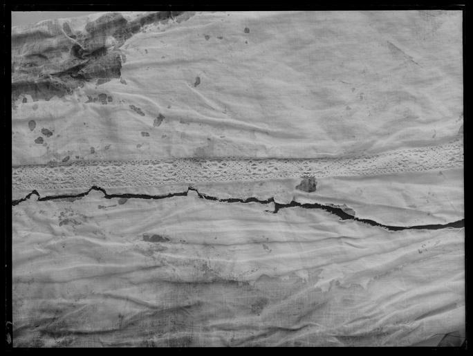 | Keywords: Innerskjortan Lützen - Livrustkammaren - 60111.tif LSH artwork sv Skjortan är sydd av 3 stora stycken l ca 1425 mm som kan iakttagas frÃ¥n krage till nederfÃ¥ll VÃ¥dbredden är 920 mm som kan konstateras frÃ¥n V nedre sprundet där staden gÃ¥r till fällsömmen i H sida Den smala ökningsvÃ¥den pÃ¥ H sida är 220 + 220 mm bred 440 mm H framstyckspartiet har spÃ¥r av skarvsömmen stadkanten är 500 mm lÃ¥ng utefter H sidsöm pÃ¥ framstycket som är en kastfÃ¥ll - sydd frÃ¥n avigsidan kastad stad mot stad 10 V-vända kaststygn / cm Intill denna söm har en rektangulär lucka rivits ut 190 x 40 mm Ärmens spjäll och andra fÃ¥llar är fällsömmar med 9 stygn / cm Spetsarna är kastade med ca 6 stygn / cm <br/>Av kragen finns en 230 mm lÃ¥ng flisa utefter kantfÃ¥llen nedtill Spetsen är delvis lossliten - sitter fast blott 50 mm och är myckt blodig L ca 130 mm Kragen är 60 mm hög och dubbelvikt <br/>Skjortan är inveckad med täta rynkor i kragen 20 rynkor / cm och sydd med 10 kaststygn och 7 efterstygni garneringssömmen / cm närmast rynkorna och 6 stygn ytterst Spetsen är 50 resp 20 mm hög <br/>Manschetten är 48 mm bred Sprundet är bevarat 70 mm lÃ¥ngt C a 14 rynkor / cm och 8 resp 6 garneringsstygn / cm Spetsen är fastkastad med ca 8 stygn Ã¥t V med vitt lingarn <br/>KastfÃ¥llen i skjortans nederkant är 15 mm bred och nedkastad med ca 9 stygn / cm H-vända med samma trÃ¥dsom skjortans - Varpen otvinnad inslaget ev svagt V-tvinnat <br/>Ett litet stycke av skjortan utgöres av en smal mycket blodig remsa frÃ¥n ena ärmen med kvarsittandespetsgarnering och en liten rest av manschetten Härav kan man fastställa ärmlängden till ca 590 mm dÃ¥sömmen mot skjortans bÃ¥lparti bevarats knappt 80 mm PÃ¥ detta stycke finns ca 140 mm kvar av aelsömmen som är en fällsöm som smalnar mot axeln <br/>Skjortans minsta smala remsa är ett stycke av V ärm som passar i den hackiga konturen pÃ¥ ärmens minstblodia parti med den mellersta myckt blodiga spetsen Detta stycke har sÃ¥väl ett stycke av skjortansaxelsöm 140 mm som lagts omlott i en sneddad söm mellan 7-14 mm bred Garneringssömmen sydd med 7stygn / cm I fortsättningen av den blott knappt 30 mm breda remsan med spetsen centralt nedtill sitteren 5 mm bred flisa av manschetten kvar med del av spets ocksÃ¥ Blott ca 480 mm av spetsens längd finns dock kvar här de översta 110 mm är bortrivna Av V ärms V axelparti finns av framstycket ett revat parti som överst har den vikta fÃ¥llen som är 145mm lÃ¥ng Efter 30 mm nerÃ¥t är en med sömmen parallell reva ca 90 mm lÃ¥ng sÃ¥ att blott en 15 mm bredtunga hÃ¥ller samman det snedrivna stycket som tillkommer med en längd av 170 mm och höjd av 130 mm Bakstycket som har en längd av 135 mm vid fÃ¥llen mot framstycket är ungefär jämnbrett med ca 110 mmbredd och nederst 240 mm lÃ¥ngt <br/>Gemensamt <br/>Av linnelärft med trÃ¥dantal 43 varptrÃ¥dar x 44 inslagstrÃ¥dar / cm2 sammanfogad av framstycke bakstycke b 1470 mm sidstycke samt ärmar ärmspjäll krage och ärmlinningar I sidorna har nertill ämnats ca 510mm höga sprund staden är synlig här i v sida Skjortans bÃ¥lparti är rakt tillskuret Nedtill harskjortan fÃ¥llats upp med en 15-20 mm bred fÃ¥ll sydd med 5 à 6 stygn/cm av H-tvinnat lingarn Derektangulärt tillskurna ärmarna blott den v nÃ¥gorlunda bevarad är 610 mm lÃ¥nga och 460 mm breda ochgarnerade med 3 rader knappt 20 mm breda vita knypplade mellanspetsar pÃ¥sydda med ca 100 mm mellanrum Ärmarna är fastsydda i skjortans sidsöm pÃ¥ v sida där staderna stöta mot varandra I h sida har manklippt upp ett 390 mm lÃ¥ngt sprund för ½ ärmbredden 230 mm + spjäll 160 mm 390 mm Nedanförärmstycket har alltsÃ¥ ett spjäll med ca 160 mm sida sytts fast Ärmarna är alltsÃ¥ isydda helt normalt och inte som Anna Maja Nylén förmodat enligt en mer egendomlig konstruktion sÃ¥ att ärmen skulle nÃ¥ ändafram till halslinningen <br/>Axelsömmarna är i det allra närmaste helt raka de yttersta 165 mm Man har blott vikt ner fÃ¥llarna nÃ¥gotbredare mot axeln än mot halsen ca 5 mm differens Härefter har ll Ã¥terstÃ¥ende vidd rynkats in i dendubbelvikta knappt 70 mm hÃ¥ga kragen som är ca 400 mm lÃ¥ng sÃ¥ att frampartierna av skjortorna fördelatspÃ¥ kragens främre decimeterlÃ¥nga stycken medan ryggstycket rynkats i kragens bakre 200 mm <br/>Halssprundet är klippt upp vertikalt i framstycket l minst 270 mm synligt i h sida därspetsgarneringen bevarats en 15 mm bred uddspets Dessutom kan pÃ¥pekas att sprundet ej placerats heltsymmetriskt mitt pÃ¥ skjortans framstycke utan med ett par centimeters förskjutning Ã¥t h dÃ¥ det klipptsca 600 mm frÃ¥n v sidsöm och 230 + 350 580 mm frÃ¥n h sida Dekor av en 15 mm bred uddspets rapport 20mm Överst pÃ¥ kragen är denna typ av spets fastsydd för att stÃ¥ upp som en avslutande kant PÃ¥ kragensutsida är kant i kant med den smala spetsen och nedÃ¥t en bredare uddspets fastsydd Denna är 50 mm bredoch har en rapport av 22 mm motivet pÃ¥minner om solfjädrar <br/>Kragens garneringssömmar sydda med efterstygn i 2 parallella rader med 7 stygn/cm och 16 rynkor avskjortan / cm Spetsen är fastkastad med 7 stygn / cm med H-tvinnat lingarn <br/>H axelsöm är en fällsöm lik den pÃ¥ skjorta C 14-3 mm bred och 165 mm lÃ¥ng Den är sydd med 3 sömmar med eftersygn Av v sidostycke ryggstycket framgÃ¥r att skjortans sidosprund sannolikt varit ca 510 mm lÃ¥ngt Isjälva sömmen är plagget emellertid uppfläkt Den V ärmen som är rel bra bevarad är nedtill vid linningen som klippts upp oerhört blodig Denhar ett ca 70 mm lÃ¥ng ärmsprund - sönderrivet och manschetten är ca 45 mm hög hur lÃ¥ng kan ej avgöras En 17 mm bred mellanspets med hjulmotiv rapport 25 mm har som garnering sytts pÃ¥ ärmarna i 3rader ända uppifrÃ¥n axelsömmen och ned till ärmlinningen Ã…tgÃ¥ng ti