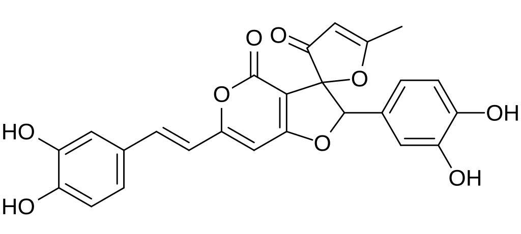 Keywords: Inoscavin A.svg Chemical structure of inoscavin A Own 19 17 31 January 2014 UTC Ed Edgar181 Spiro compounds Polyphenols Lactones