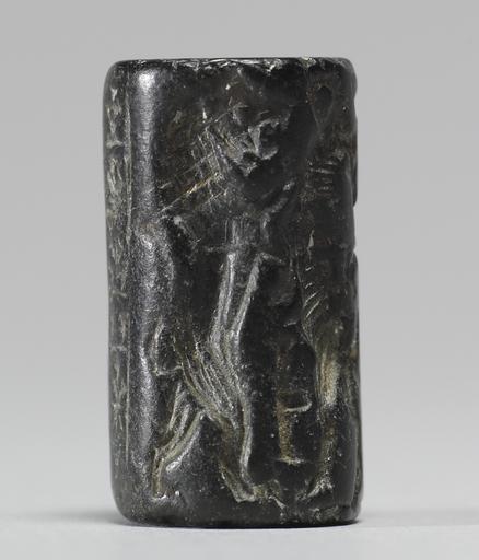 Keywords: Inscriptions - Walters 42582 - Side B.jpg The depicted scene includes a lion and a griffin both on hind legs attacking a horned quadruped The horned quadruped's body faces the lion but its head is turned to face the griffin Behind the griffin is another figure the top of which is difficult to read but the legs on which it stands are that of a bull bull-man A cuneiform inscription in two registers borders the scene date Old Babylonian black stone cm 2 5 1 3 h x diam accession number 42 582 12556 Sadie Jones Mrs Henry Walters New York date and mode of acquisition unknown Sale Joseph Brummer New York 1941 Walters Art Museum 1941 by purchase Museum purchase 1941 Inscription place of origin Egypt Walters Art Museum license Cylinder seals in the Walters Art Museum Art of the ancient Near East Walters cylinder seal 42582 Walters Art Museum cylinder seals with cuneiform Media contributed by the Walters Art Museum needs category review |