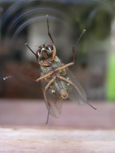 Keywords: insect fly legs hair sensors door window mirror green brown transparent small tiny fine hairs feeler wings reflection