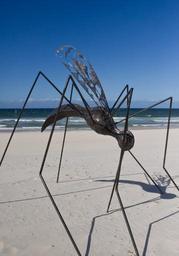 Keywords: insect sculpture art black large legs model metal contemporary modern beach sand sea blue sky australia exhibition