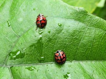 Keywords: insects ladybirds ladybird close-up leaf green nature spring red black