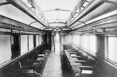 | Keywords: Inside-of-japanese-1st-class-PC.jpg en Inside of Japanese 1st Class Passenger Car of JGR ja 1等客車の内部( 等客車内部 大正六年天野工場ノ製 ニ係ル 二等客車 等室ノ内部ヲ示スモノニシテ 旅客十八人ヲ定員トシ 積 百四十平方呎 幅 内矩 七呎十吋 高サ 内矩 八呎三吋ニシテ 電燈ヲ装置セリ) 日 の客車 写 で見る客車の90年 日 の客車編さん委員会編 鉄道図書刊行会 1962年 46頁によればナイロフ5400 ナイロフ10560内部 日 鉄道史 鉄道 1921年 Ministry of Railway Tetsudō-shō Japan Railway History Nippon Tetsudō-shi in Japanese 1921 plate between pages published in 1921 Author PD-Japan-oldphoto Passenger cars of JNR | ||||