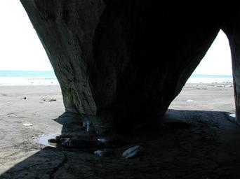 | Keywords: Inside rock arches at White Cliffs.jpg Inside rock arches at the base of White Cliffs looking out over the black sand beach Own 2011-01-02 Pseudopanax at http //en wikipedia org en wikipedia 38 52 57 S 174 31 50 E Taranaki Region Beaches of New Zealand Black sand beaches |