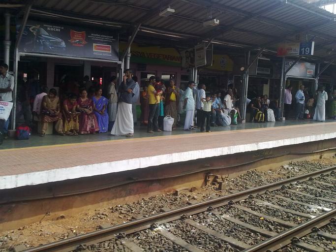 Keywords: Inside of Thrissur Railway Station.jpg en Inside view of first platform of Thrissur Railway Station Thrissur own Jpullokaran 2010-01-06 Thrissur Railway Station Groups of people in Kerala