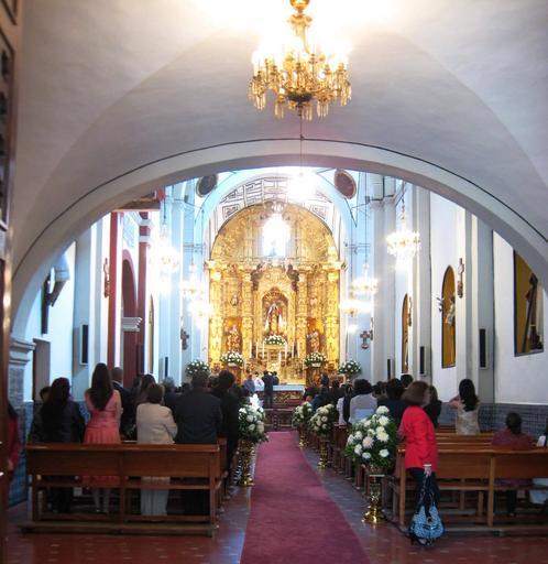 Keywords: InsideElCarmenSanAngelDF.JPG en Inside the chapel of the ex convent of El Carmen in the San Angel colonia of Mexico City A wedding is in progress Own Thelmadatter 2008-10-25 Church of the Virgin of El Carmen San Angel Mexico City