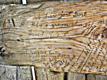 | Keywords: Inskrifter1 gammal Rastkoja Grena.jpg en Notes from inside an old hut in Grena North of Sweden sv Inskriptioner skriva av människor tidigt 1900 tal från gammal rastkoja i Grena Västerbotten Bernt Grenmyr Ebcberg 2009 Cc-zero Storuman Municipality |
