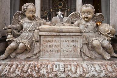 | Keywords: Inskription på Gustav Vasas grav.jpg sv Inskription på Gustav Vasas grav i Uppsala domkyrka Texten är ett citat från den latinska bibelöversättningen Vulgata från Jesus Syraks vishet 7 40 Motsvarande vers är i Bibel 2000 Jesus Syraks vishet 7 36 och lyder Tänk på livets slut i allt vad du gör då kommer du aldrig någonsin att synda en Inscription on the tomb of Gustav I of Sweden in the Cathedral of Uppsala The text is from the Vulgate version of Sirach 7 40 2011-10-09 own Dcastor cc-zero Uploaded with UploadWizard King Gustav I of Sweden family grave Quotations from Ecclesiasticus Taken with Canon EOS 40D Sculptures of putti Sweden Uppsala Churches in Sweden photographed in 2011 |