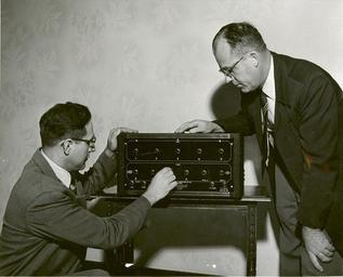 | Keywords: clayton sutter claytonsutter ralph imhoff ralphimhoff fire detectors firedetectors mennonite board of missions maple lawn homes home for the aged eureka illinois voluntary service mennonite voluntary service elderly nursing homes mennoniteboardofmissionsmaplelawnhomeshomefortheagedeurekaillinoisvoluntaryservicemennonitevoluntaryserviceelderlynursinghomes indoor Caption: Ralph Imhoff (right) chairman of the Board of Directors of the Mennonite Home for the Aged, Eureka Ill., and Clayton Sutter, superintendent, inspect the panel of the fire detection system being installed at the Home. The system indicates the area and floor on which an abnormal rise in temperature occurs and automatically sounds an alarm in the building and at the telephone office. The operator at the switch board will immediately call the fire department.. Citation: Mennonite Board of Missions. Photographs. Illinois, Eureka, Home for the Aged, 1950-1956. IV-10-7.2 Box 3 Folder 72. Mennonite Church USA Archives - Goshen. Goshen, Indiana. Caption: Ralph Imhoff (right) chairman of the Board of Directors of the Mennonite Home for the Aged, Eureka Ill., and Clayton Sutter, superintendent, inspect the panel of the fire detection system being installed at the Home. The system indicates the area and floor on which an abnormal rise in temperature occurs and automatically sounds an alarm in the building and at the telephone office. The operator at the switch board will immediately call the fire department.. Citation: Mennonite Board of Missions. Photographs. Illinois, Eureka, Home for the Aged, 1950-1956. IV-10-7.2 Box 3 Folder 72. Mennonite Church USA Archives - Goshen. Goshen, Indiana. |