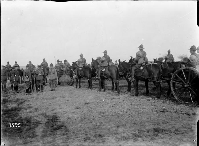 Keywords: blackandwhite monochrome outdoor black and white Inspection of the transport of a New Zealand Field Artillery Battery early in the morning near Bus-les-Artois by the General Officer Commanding of the New Zealand Division, Major General Russell (on right with stick). Photograph taken 21 May 1918 by Henry Armytage Sanders. Inscriptions: Inscribed - Photographer's title on negative -bottom left: H596. Quantity: 1 b&w original negative(s). Physical Description: Dry plate glass negative 4.75 x 6.5 inches Inspection of the transport of a New Zealand Field Artillery Battery, France. Royal New Zealand Returned and Services' Association :New Zealand official negatives, World War 1914-1918. Ref: 1/2-013205-G. Alexander Turnbull Library, Wellington, New Zealand. natlib.govt.nz/records/22324067 Inspection of the transport of a New Zealand Field Artillery Battery early in the morning near Bus-les-Artois by the General Officer Commanding of the New Zealand Division, Major General Russell (on right with stick). Photograph taken 21 May 1918 by Henry Armytage Sanders. Inscriptions: Inscribed - Photographer's title on negative -bottom left: H596. Quantity: 1 b&w original negative(s). Physical Description: Dry plate glass negative 4.75 x 6.5 inches Inspection of the transport of a New Zealand Field Artillery Battery, France. Royal New Zealand Returned and Services' Association :New Zealand official negatives, World War 1914-1918. Ref: 1/2-013205-G. Alexander Turnbull Library, Wellington, New Zealand. natlib.govt.nz/records/22324067 |