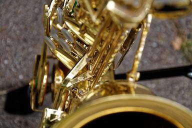Keywords: instrument musical instrument wind instrument brass instrument saxophone saxophone detail close up analog band music close