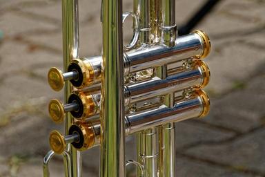 Keywords: instrument musical instrument wind instrument brass instrument trumpet detail close up analog band music close