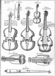 | Keywords: Instrumenta polychorda2.gif Bowed string instruments of 17th century Europe labeled in Latin Musurgia Universalis book VI chapter II plate 8 between pages 486 and 487 1650 Athanasius Kircher Identifications I Chelys maior en Violone or en Cello II Linterculus en Rebec or en Kit violin III Chelys hexachorda bass Viola da gamba IV Chelys minor en Violin V Lyra dodecachorda en Lirone VI Lyra mendicorum en Hurdy gurdy VII Monochordon en Monochord but conflated with the design of the en Tromba marina PD-old-100 Musurgia universalis Bowed string instruments Violone Rebec Pochettes Bass viol Violins Musical instruments on white background Lira da gamba Hurdy-gurdy Monochords |